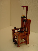 I’m sure my expression revealed my surprise. I must admit, it was an interesting request. He went on to explain that while he and his wife do collect miniature chairs, he is in security, and someone examining his collection noted that it did not include a chair that could be loosely associated with his profession. Thus began his hunt for a miniature electric chair. I was quite certain that I had never seen an electric chair in miniature, but I suggested that he leave his name and phone number and that I would try to fulfill his request. Soon after he left the shop, I began my quest. I called several vendors who I thought might make such an item, I searched through my files of artisans, and I surfed the Internet. No luck. I did, however, stumble upon “Li'l Sparky” a You Tube video someone made on a battery operated miniature electric chair. Quite funny in a dark way, but not what I’m sure he had in mind. During the course of the next couple weeks, I asked and searched, but came up empty. Then one day I came across a website about “The Mystery Electric Chair.” Interestingly enough, the site included a schematic for a 19th Century electric chair; the origins of which the author was trying to learn. As I looked at the drawings, it dawned on me that the lines were simple and reproducible in miniature. Thus began the building of my electric chair.